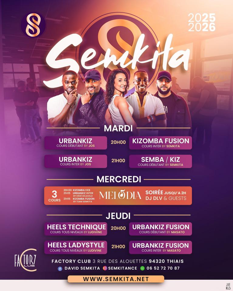 ▪️Mercredis: Cours de 20h30 à 22h00 + Soirée Mélodia (100% Kizomba) jusqu'à 2h