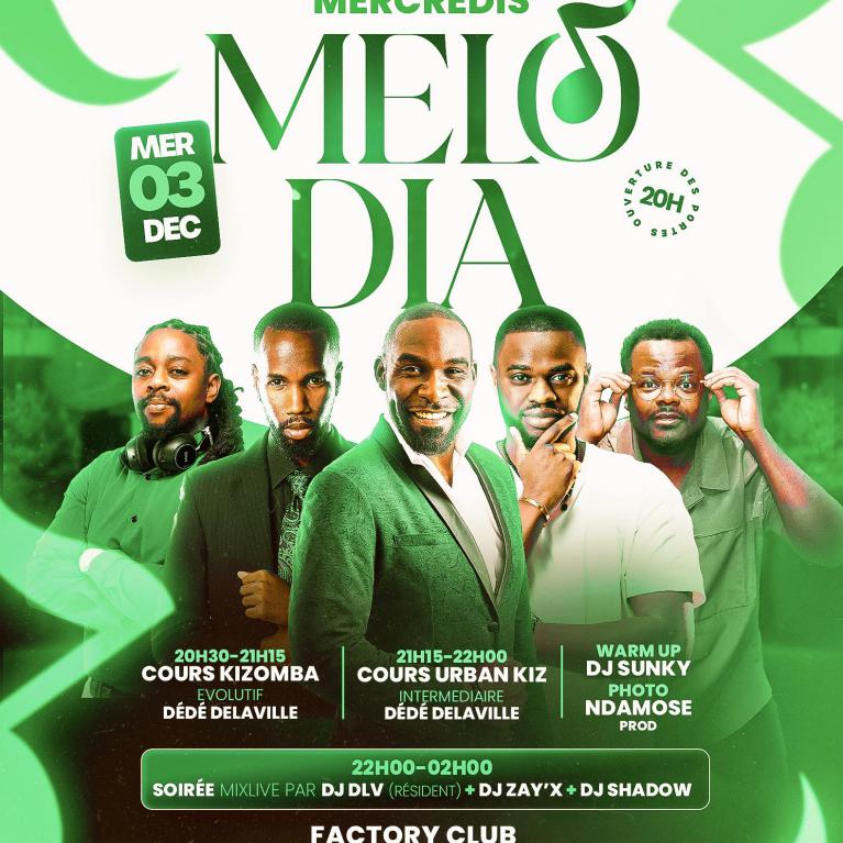 ▪️Mercredis: Cours de 20h30 à 22h00 + Soirée Mélodia (100% Kizomba) jusqu'à 2h